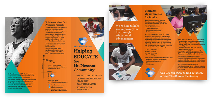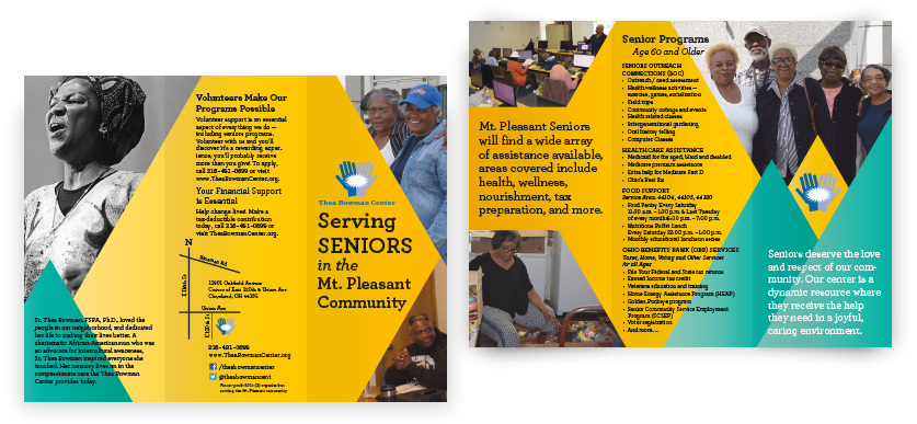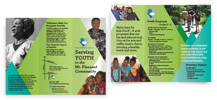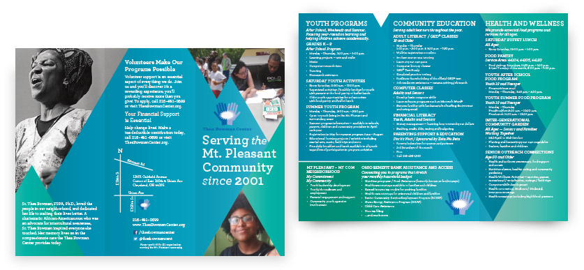 A series of brochures for a non-profit organization serving the Mt. Pleasant neighborhood of Cleveland, Ohio.