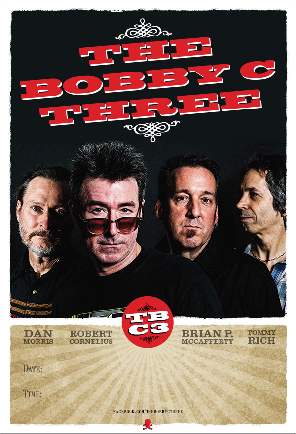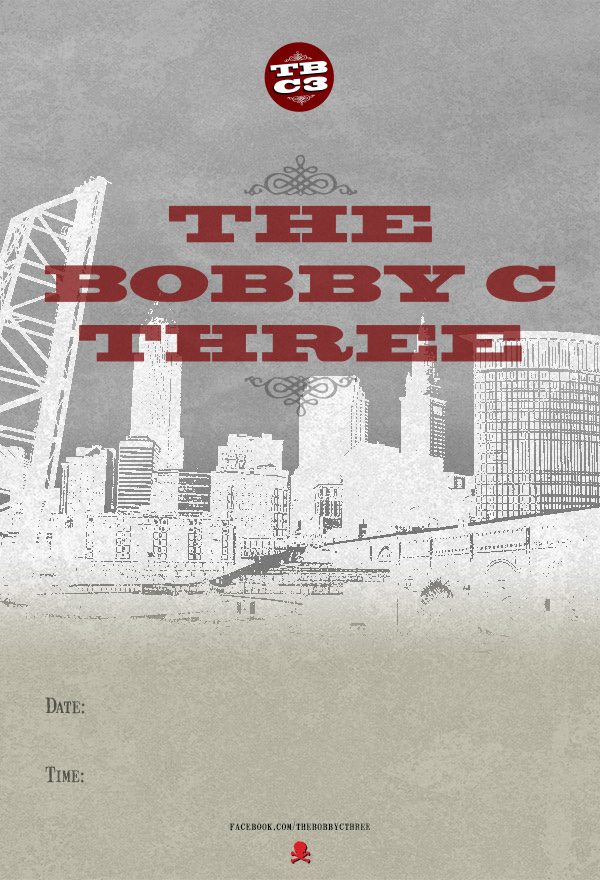 A series of posters sent to venues to promote upcoming shows for The Bobby C Three, a Roots Rock / Western / Americana band from Cleveland OH